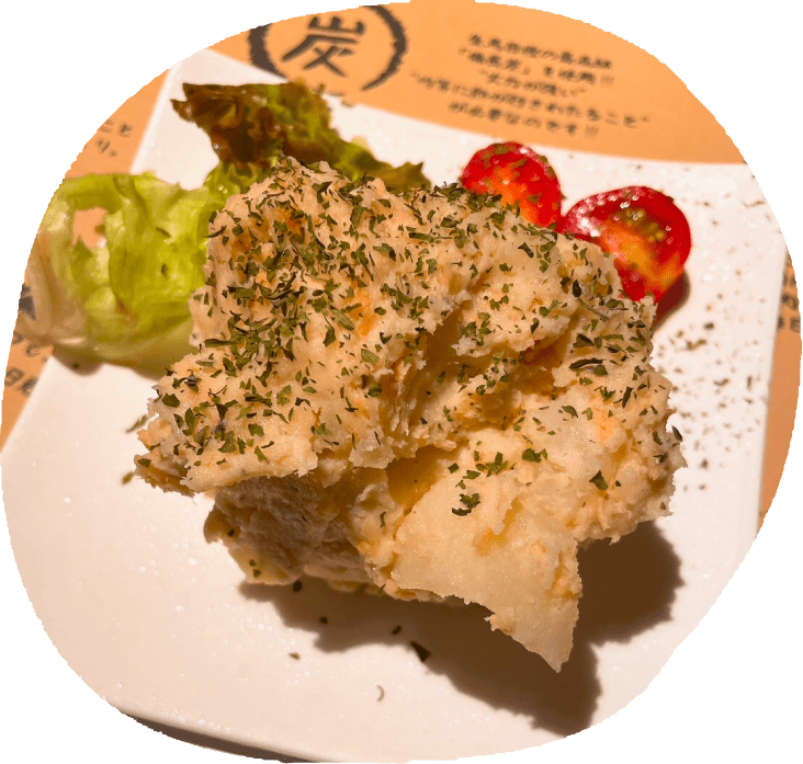 もちろん備長炭にて焼き上げます。燃えるときに赤外線を放ち、水蒸気を出さない為、食材の表面をパリッと仕上げて、旨みを逃しません。