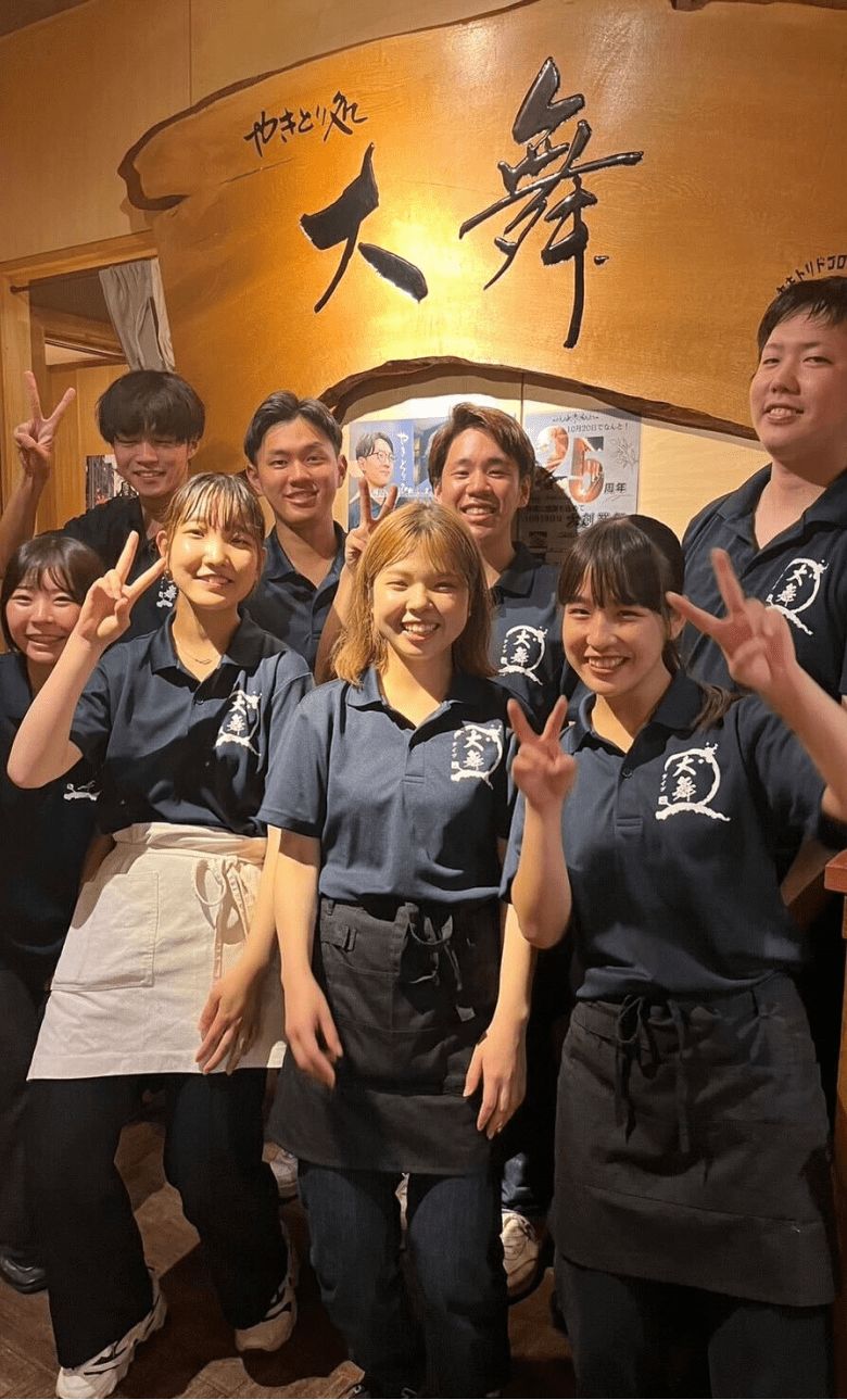 活気溢れるスタッフが笑顔でお迎えします。どうぞ美味しい焼き鳥を味わい、癒されて下さい。